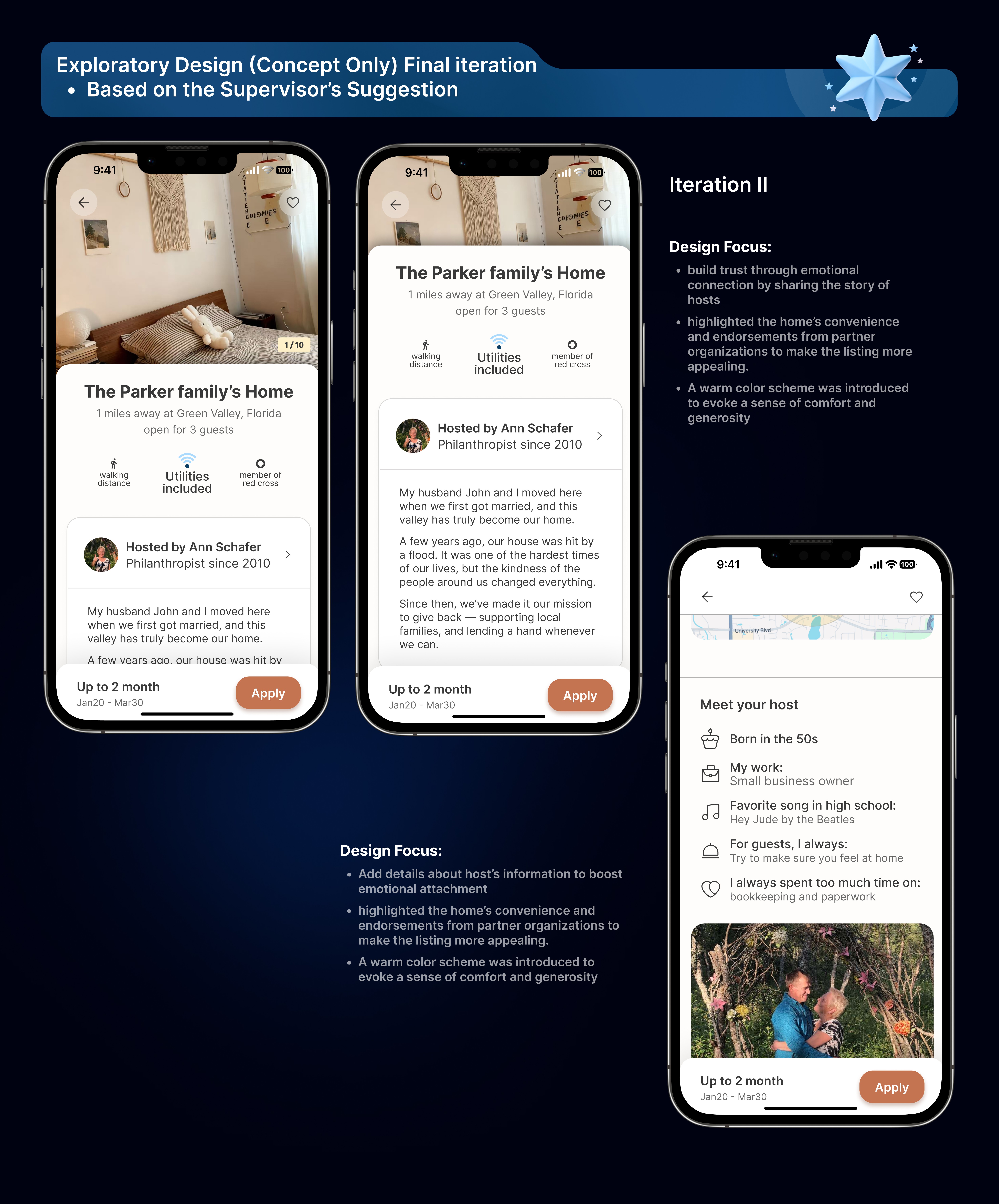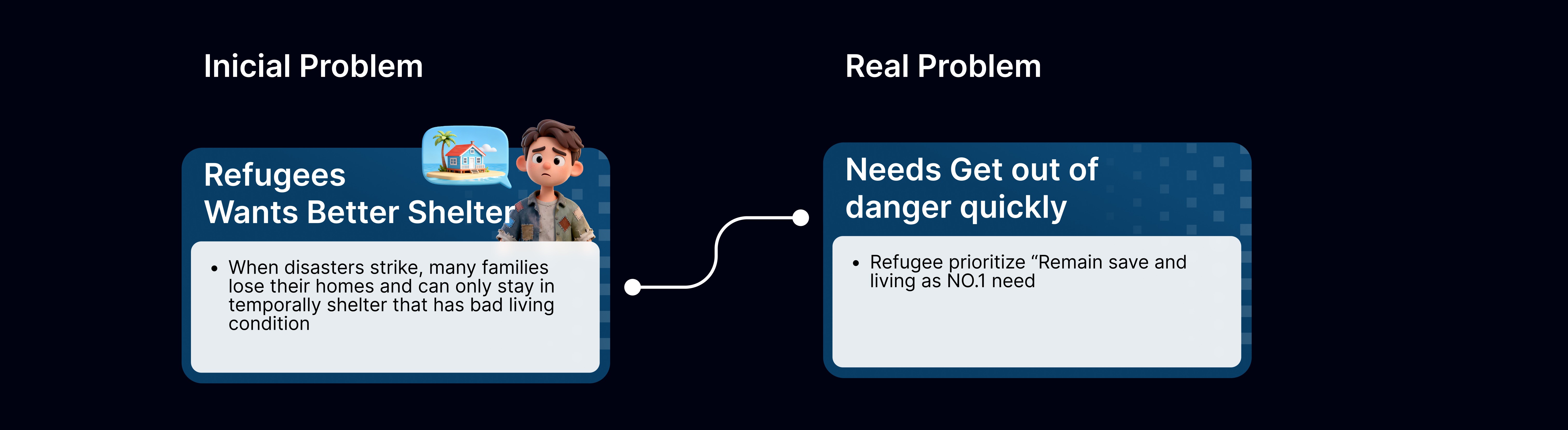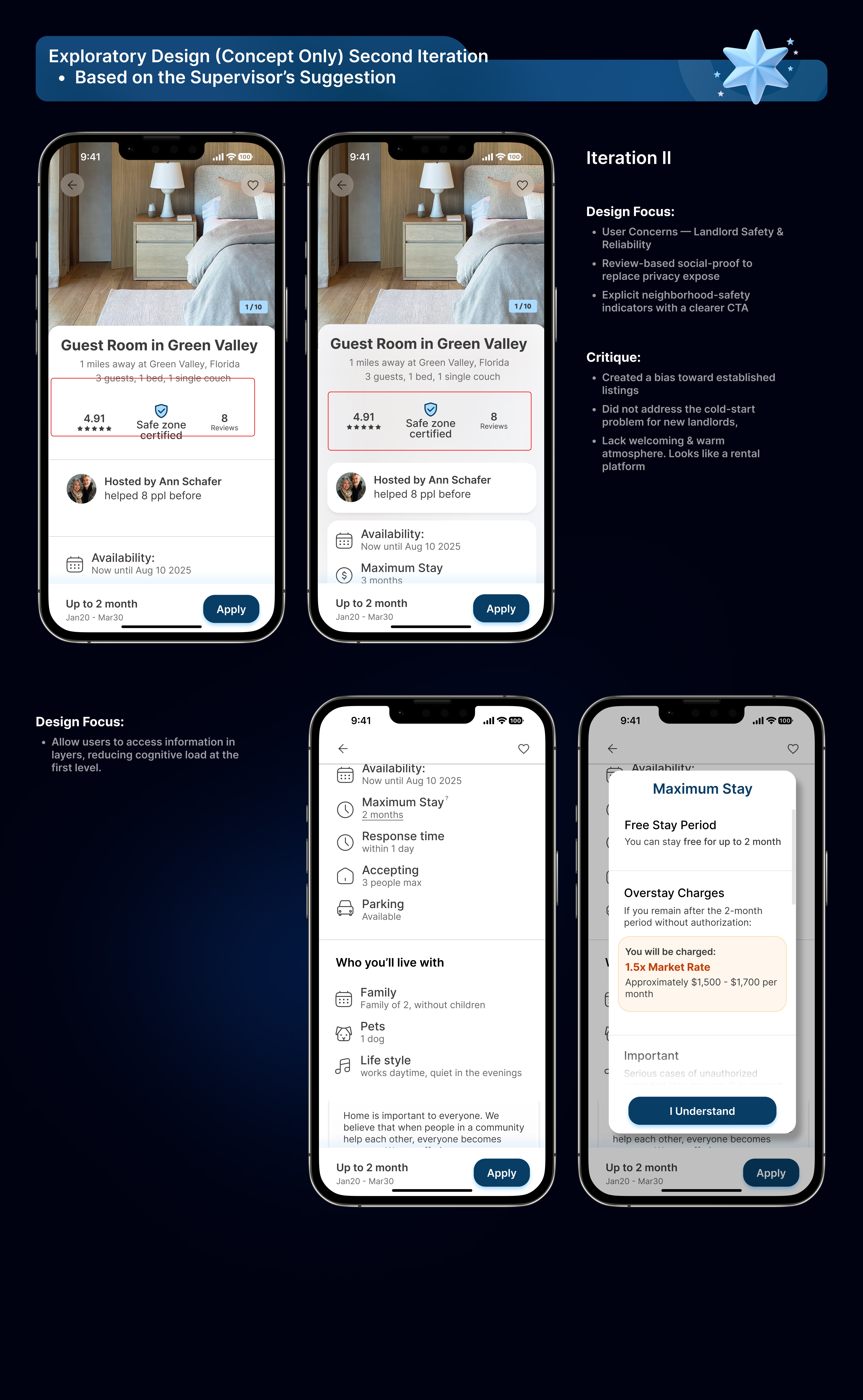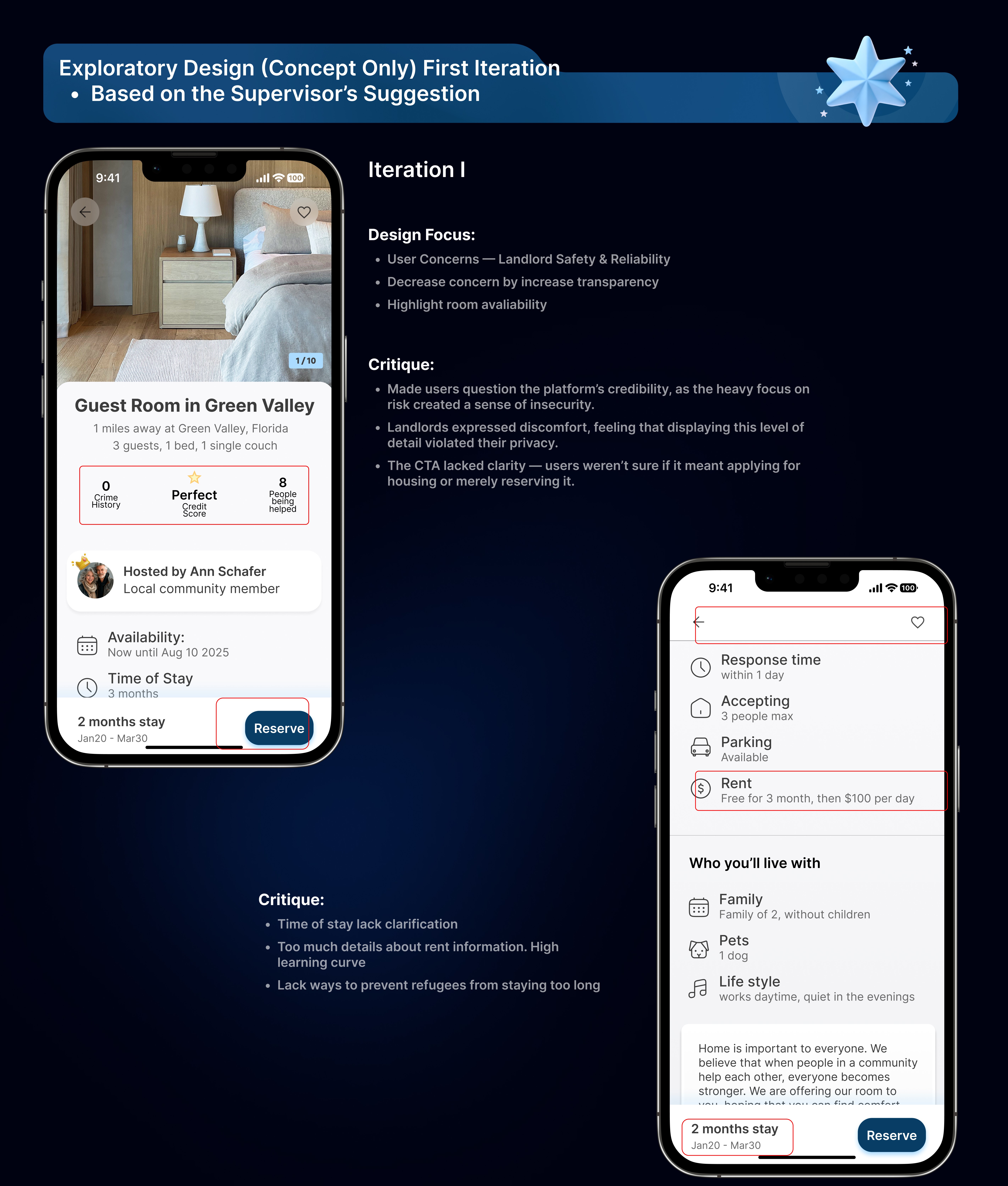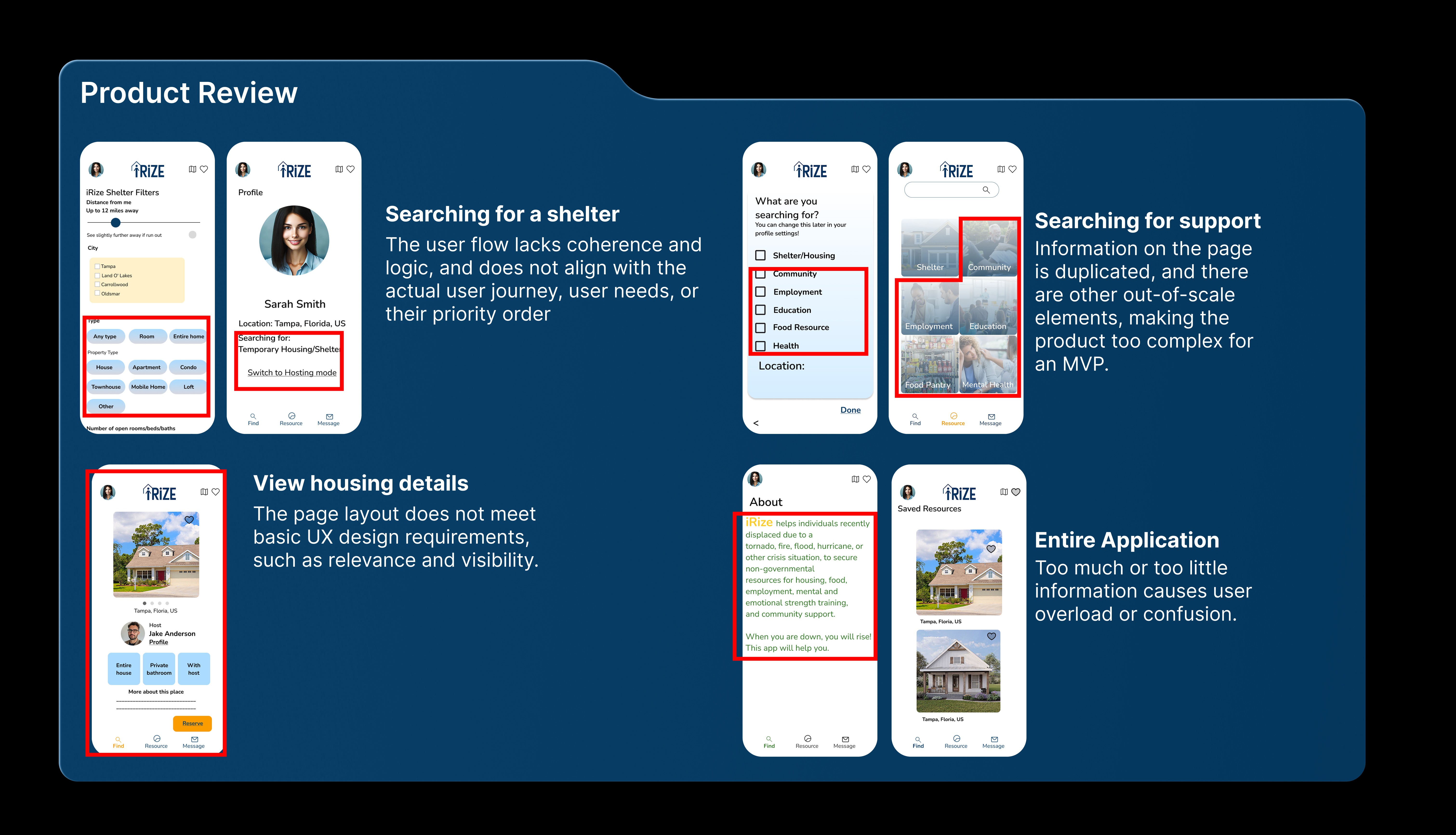 I refined and iterated on a disaster-relief housing platform, focusing on transforming an initial concept into an MVP that could meaningfully test trust and user behavior.