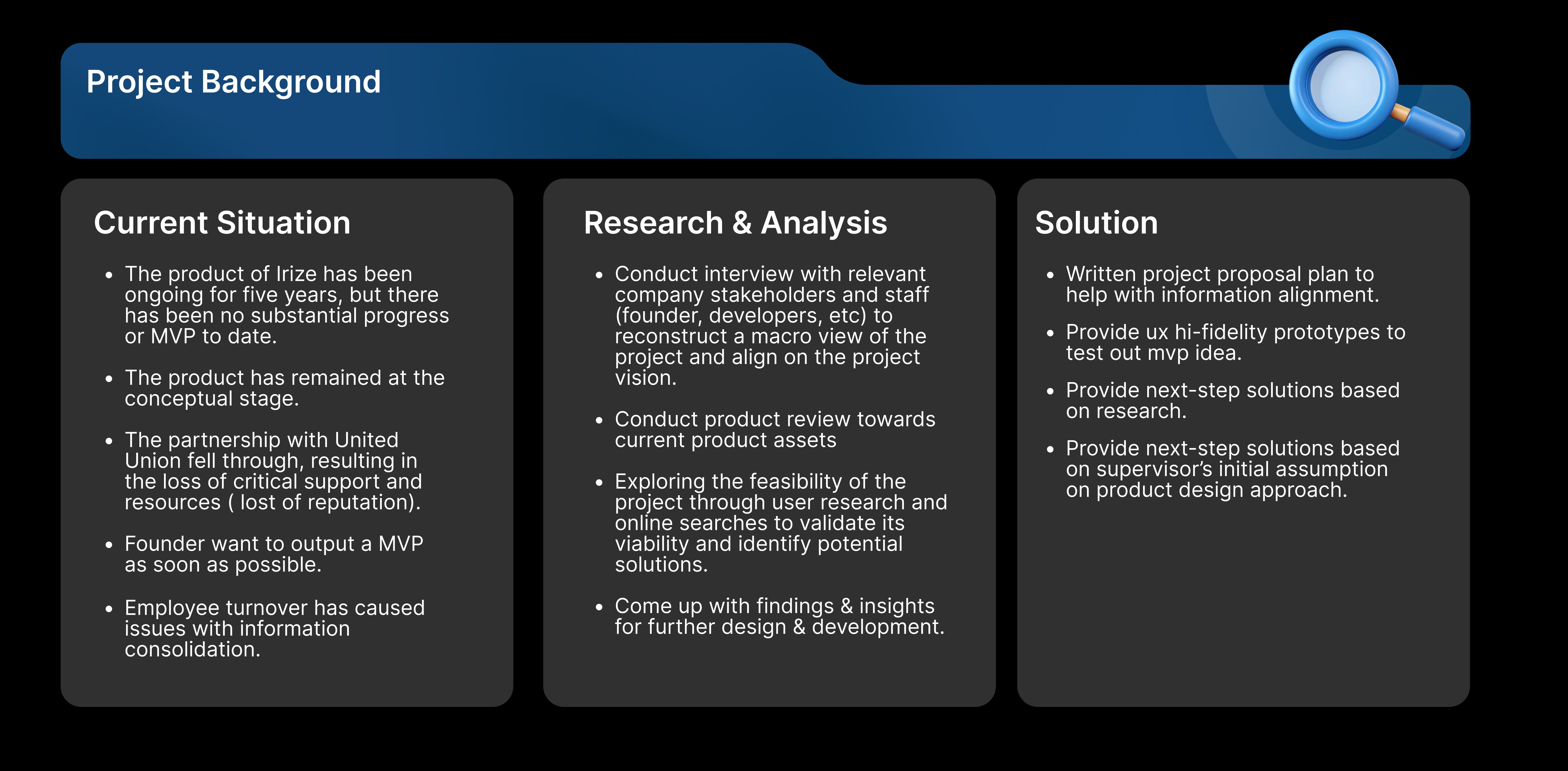 When leading a project, it is important to avoid fixating on “building an app” or “making a website” as the goal. The final form of a product is only an outcome, not the problem itself. The focus should always be on exploring multiple ways to address the core issue.